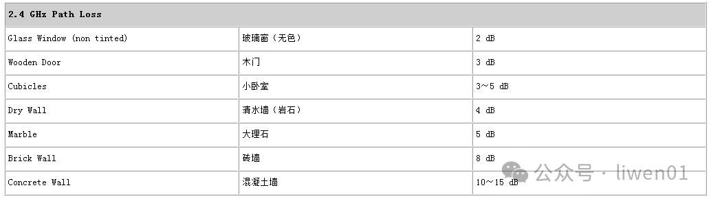 5G WiFi典型穿透損耗經(jīng)驗(yàn)值