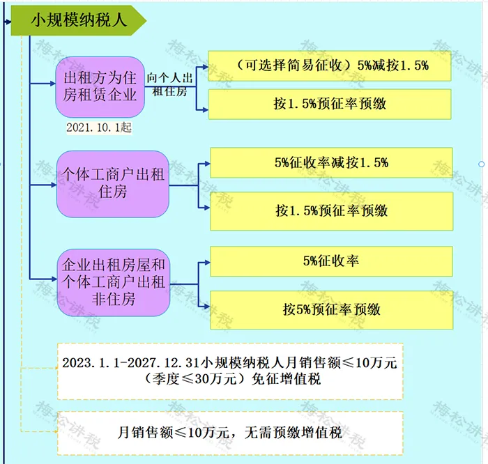 違法事實: 2022年,合同年租金7833284.8元,成本費用實際列支租金7239118.13元,收到發(fā)票金額3621284.8元,未收到發(fā)票金額3617833.33元,造成他人少繳房產(chǎn)稅217070.00元,印花稅1808.92元,個人所得稅275644.44元,合計造成他人少繳稅款494523.36元。 2023年,合同年租金6935878.20元,成本費用實際列支租金6935878.20元,收到發(fā)票金額3630116.80元,未收到發(fā)票金額3305761.40元,造成他人少繳房產(chǎn)稅198345.68元,印花稅1652.88元,個人所得稅251867.54元,合計造成他人少繳稅款451866.10元。 該公司未按規(guī)定取得發(fā)票,造成他人少繳稅款1640810.11元,最終被處以罰款82.33萬元。 租房的水電費都是房東個人 水電費的戶名都是房東,也不能直接開給公司。因為發(fā)票抬頭是房東的,不符合增值稅進項稅額的抵扣規(guī)定,存在不能抵扣進項稅額的問題。 但是,公司租房子支付的水電費發(fā)票抬頭是房東的,卻可以作為企業(yè)所得稅的稅前扣除憑證。 根據(jù)《企業(yè)所得稅稅前扣除憑證管理辦法》第十九條規(guī)定:租房產(chǎn)生的水電等費用,出租方可以和承租方采取分攤的方式處理! 水電費發(fā)票抬頭是房東個人的稅前扣除資料:發(fā)票、發(fā)票分割單。 除了上述資料,在租賃合同條款中亦需要約定分攤,使得相關(guān)憑證更加合理合規(guī)。 (分割單樣式) 注意:分割單不可以作為增值稅的抵扣憑證來抵扣增值稅。 一、增值稅 二、個人所得稅 個人將承租房屋轉(zhuǎn)租取得的租金收入,屬于個人所得稅應(yīng)稅所得,應(yīng)按“財產(chǎn)租賃所得”項目計算繳納個人所得稅。對個人出租住房取得的所得減按10%的稅率征收個人所得稅。 在計算財產(chǎn)租賃所得時,納稅人可依次扣減財產(chǎn)租賃過程中繳納的稅費、向出租方支付的租金、由納稅人負擔的租賃財產(chǎn)實際開支的修繕費用以及稅法規(guī)定的費用扣除標準。根據(jù)個人所得稅法規(guī)定,財產(chǎn)租賃所得費用扣除標準為,每次收入不超過4000元的,減除費用800元;4000元以上的,減除20%的費用。 三、房產(chǎn)稅 此外,教育費附加、地方教育附加方面,根據(jù)《財政部 國家稅務(wù)總局關(guān)于擴大有關(guān)政府性基金免征范圍的通知》(財稅〔2016〕12號)規(guī)定,如果月租金不超過10萬元,予以免征。 一、增值稅 1.一般規(guī)定 2.減免規(guī)定 (1)對經(jīng)營公租房所取得的租金收入,免征增值稅。公租房經(jīng)營管理單位應(yīng)單獨核算公租房租金收入,未單獨核算的,不得享受免征增值稅優(yōu)惠政策。 (2)軍隊空余房產(chǎn)租賃收入,免征增值稅。 二、城建稅及附加稅 三、房產(chǎn)稅 1.一般規(guī)定 企業(yè)出租房屋,以房產(chǎn)租金收入為房產(chǎn)稅的計稅依據(jù),稅率為12%。 無租使用其他單位房產(chǎn)的應(yīng)稅單位和個人,依照房產(chǎn)余值代繳納房產(chǎn)稅。 對出租房產(chǎn),租賃雙方簽訂的租賃合同約定有免收租金期限的,免收租金期間由產(chǎn)權(quán)所有人按照房產(chǎn)原值繳納房產(chǎn)稅。 2.減免規(guī)定 (1)對企事業(yè)單位、社會團體以及其他組織按市場價格向個人出租用于居住的住房,減按4%的稅率征收房產(chǎn)稅。 (2)對按政府規(guī)定價格出租的公有住房和廉租住房,包括企業(yè)和自收自支事業(yè)單位向職工出租的單位自有住房;房管部門向居民出租的公有住房;落實私房政策中帶戶發(fā)還產(chǎn)權(quán)并以政府規(guī)定租金標準向居民出租的私有住房等,暫免征收房產(chǎn)稅。 (3)對公租房免征房產(chǎn)稅優(yōu)惠期限延長至2027年12月31日。 (4)2021年1月1日至2027年12月31日,增值稅小規(guī)模納稅人可以在50%的稅額幅度內(nèi)減征房產(chǎn)稅。 四、城鎮(zhèn)土地使用稅 五、印花稅
