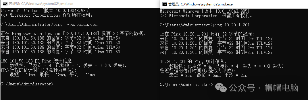 到這里設(shè)置好了接下來,電腦上內(nèi)網(wǎng)的服務(wù)器和發(fā)郵件,瀏覽網(wǎng)頁均OK,下面測試一下,分別ping一下百度域名,和內(nèi)網(wǎng)服務(wù)器OA的域名地址。成功搞定。