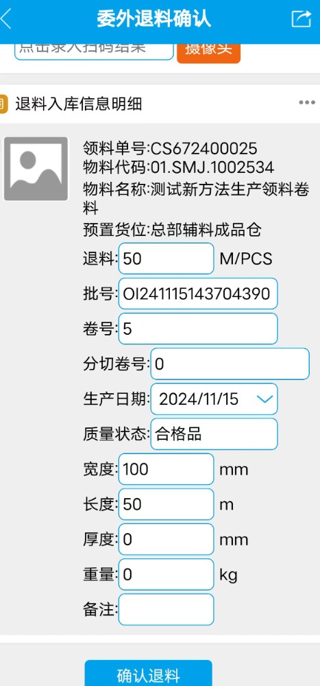 :點(diǎn)晴ERP-委外退料掃碼入庫確認(rèn)-操作流程