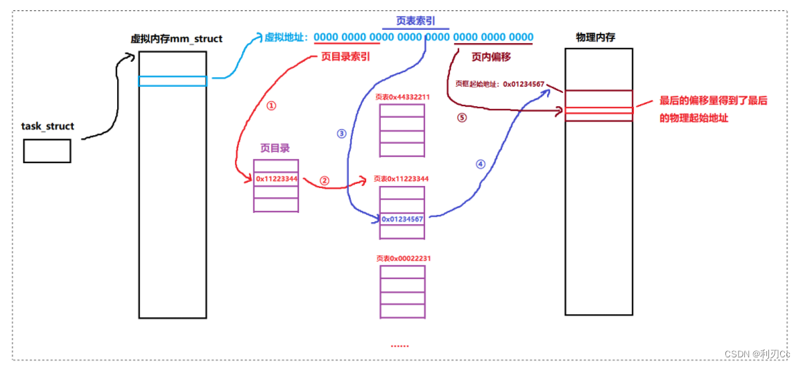 即根據(jù) task_struct->mm 找到進(jìn)程頁表,遍歷頁表獲取物理地址