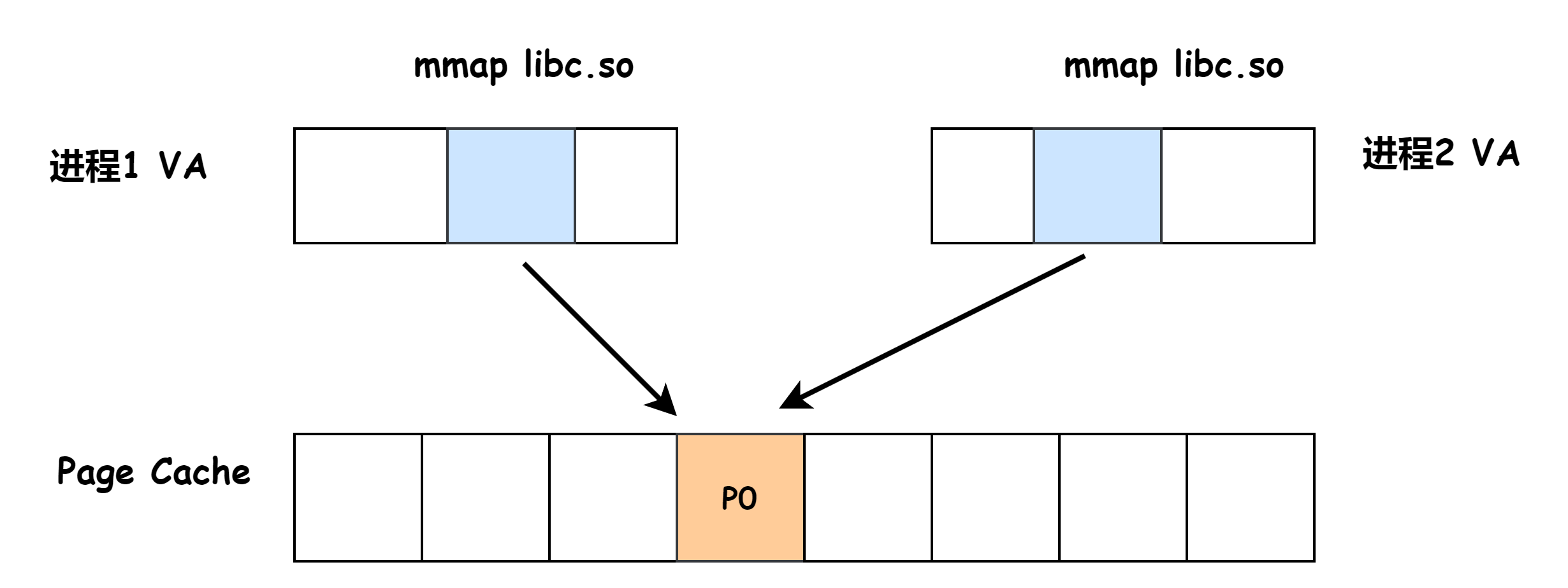 具體來說,當(dāng)兩個進(jìn)程同時以只讀權(quán)限 mmap libc.so 文件時,這兩個進(jìn)程的 VA 會指向同一個物理頁
