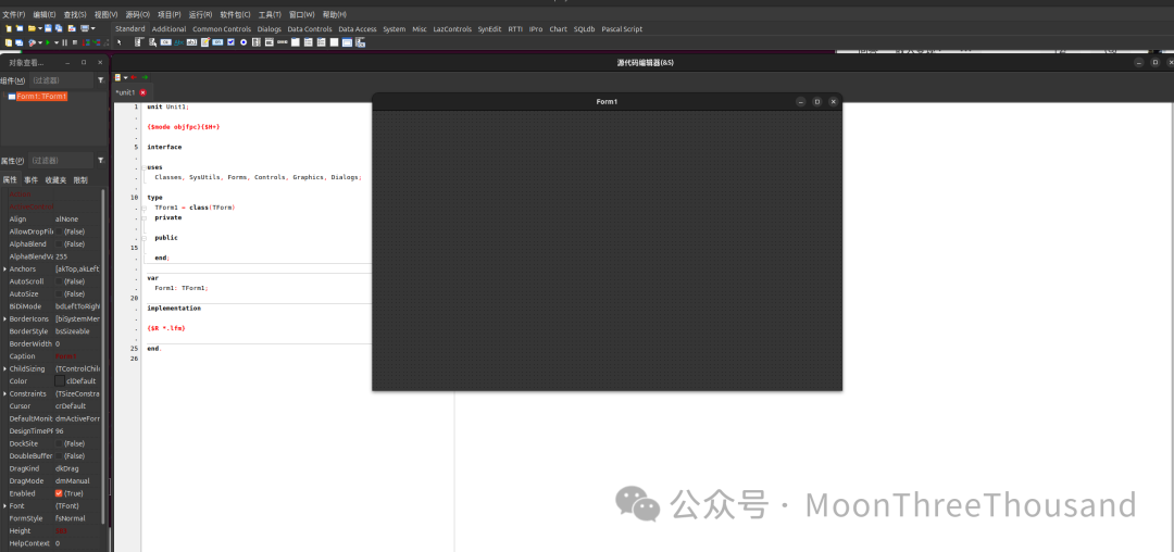 2、Lazarus(Pascal) 這個(gè)可以看做“Delphi”的Linux版本,和Delphi7非常類似,提供了獨(dú)特的"多個(gè)窗體同時(shí)懸浮,一起工作”的界面。 這種界面,非常具有辨識(shí)度。因?yàn)槲覀兤毡槭褂玫腣isual Studio、Vs Code、IDEA等節(jié)目,都是多文檔+多Tab界面,而Lazarus的界面非?!癉elphi”化,讓人一看便知!