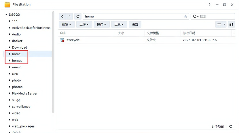 摘要:我們在使用群暉NAS的時(shí)候,在系統(tǒng)中啟用了“家目錄”后,系統(tǒng)會(huì)自動(dòng)生成“homes”文件夾,管理員打開File Station后卻能看到“home”和“homes”這兩個(gè)文件夾,說到這里想必大家都會(huì)有疑問為什么會(huì)有兩個(gè)文件夾呢?這兩個(gè)文件夾到底是什么關(guān)系呢,接下來就給大家詳細(xì)的介紹下。 ▼homes文件夾是群暉自帶的文件夾,就類似我們安裝特定軟件后生成的特定文件夾一樣,如video、photos等等。我們可以在控制面板---用戶與群組---高級設(shè)置中啟用“家目錄”后,啟用后系統(tǒng)就會(huì)自動(dòng)生成“home”和“homes”這兩個(gè)文件夾。