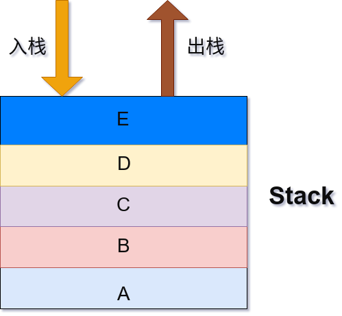 當(dāng)執(zhí)行到showName函數(shù)的時候,我們就有了兩個執(zhí)行上下文了——全局執(zhí)行上下文和 showName 函數(shù)本身的執(zhí)行上下文(函數(shù)執(zhí)行上下文)。這也就是說在執(zhí)行JavaScript 時,會存在多個執(zhí)行上下文。那當(dāng)有多個上下文的時候,JavaScript引擎是如何管理的呢?這就是我們下面要說到的一種數(shù)據(jù)結(jié)構(gòu)——棧 4、棧(Stack)棧(Stack)是一種線性數(shù)據(jù)結(jié)構(gòu),遵循后進(jìn)先出(Last In, First Out, LIFO)的原則。這意味著最后進(jìn)入棧的元素會最先被移除。如下圖所示,最先進(jìn)入的是A,但是最先出的卻是E。而avaScript引擎正是利用棧的這種結(jié)構(gòu)來管理執(zhí)行上下文的。在執(zhí)行上下文創(chuàng)建好后,JavaScript引擎會將執(zhí)行上下文壓入棧中,然后進(jìn)行執(zhí)行,而通常把這種用來管理執(zhí)行上下文的棧稱為執(zhí)行上下文棧,或者叫JavaScript調(diào)用棧。