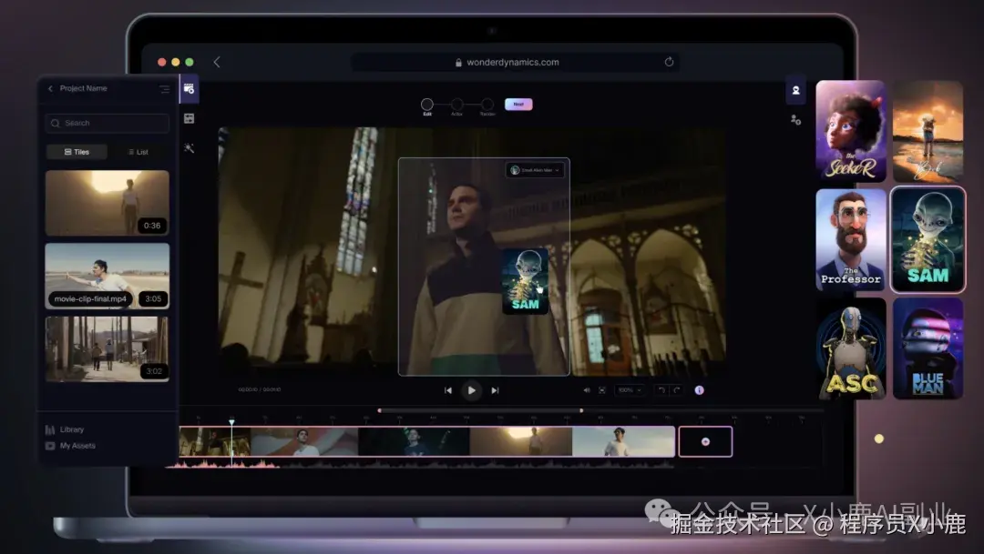 也是上傳一段視頻,選擇一個(gè)替換的形象,Wonder Studio 會(huì)自動(dòng)識(shí)別并進(jìn)行替換。