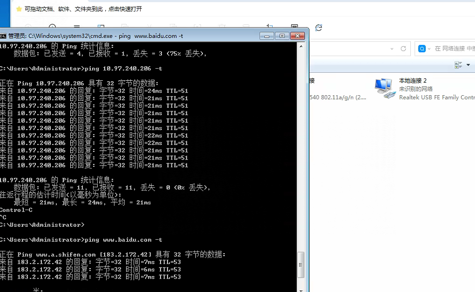 可以看到,現(xiàn)在這臺電腦既可以訪問集團的內(nèi)網(wǎng),又可以訪問到百度的互聯(lián)網(wǎng)了。