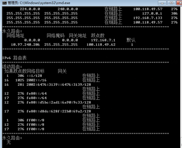 我們再看一下,現(xiàn)在配置好的靜態(tài)路由,可以看到默認的靜態(tài)路優(yōu)先級最高,躍點數(shù)是1。