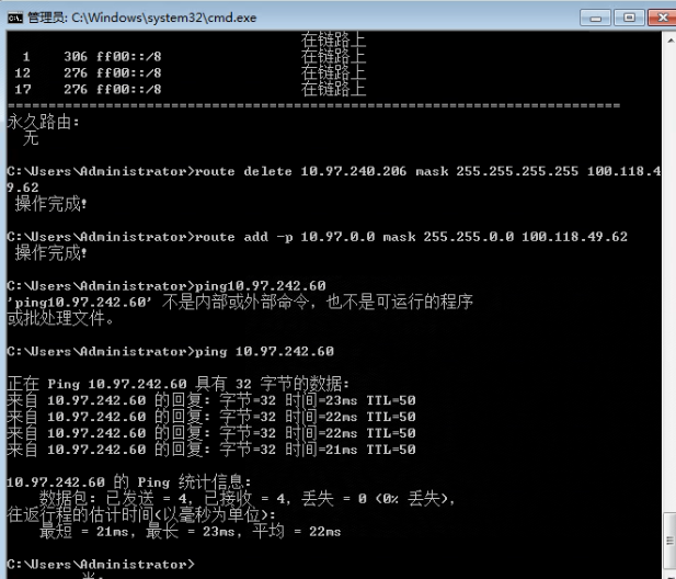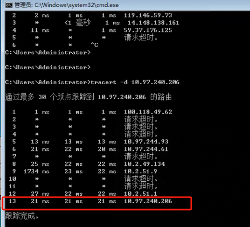 添加完成之后,可以看到,我們再次訪問集團內(nèi)網(wǎng)10.97.240.206這臺服務(wù)器時,就可以正常ping通了。
