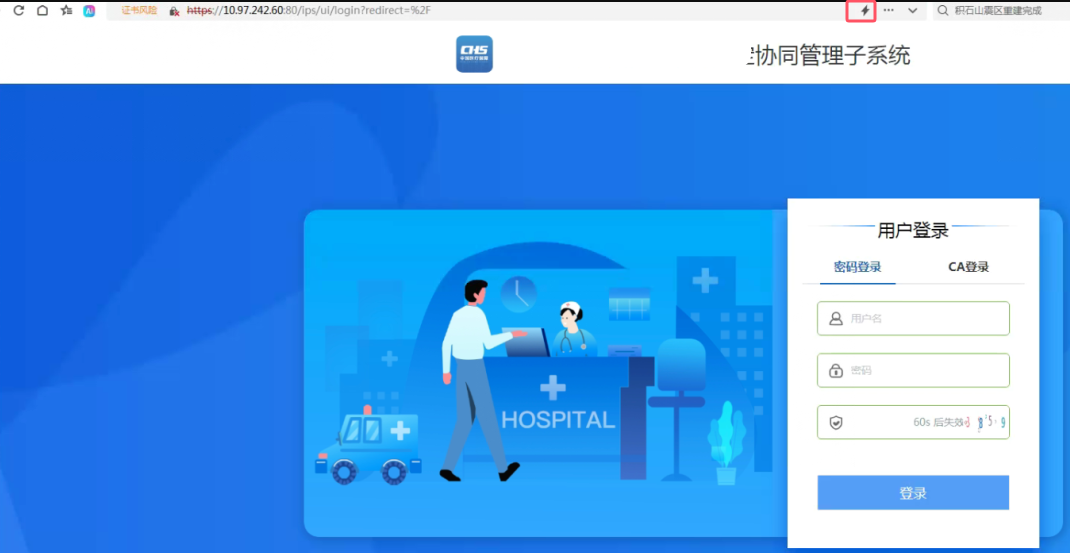 可以看到,現(xiàn)在也可通過域名訪問到這個系統(tǒng)了。第一次訪問的時候,居然打開是白屏,后來更改為極速模式之后,就可以正常打開了。