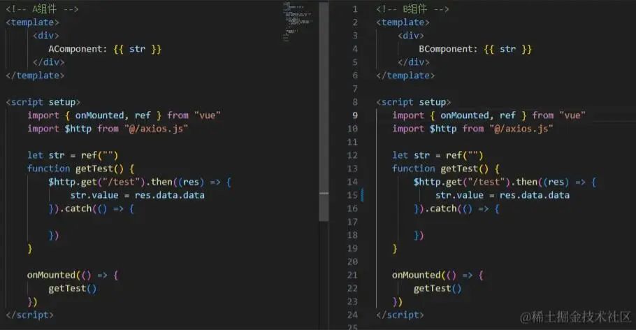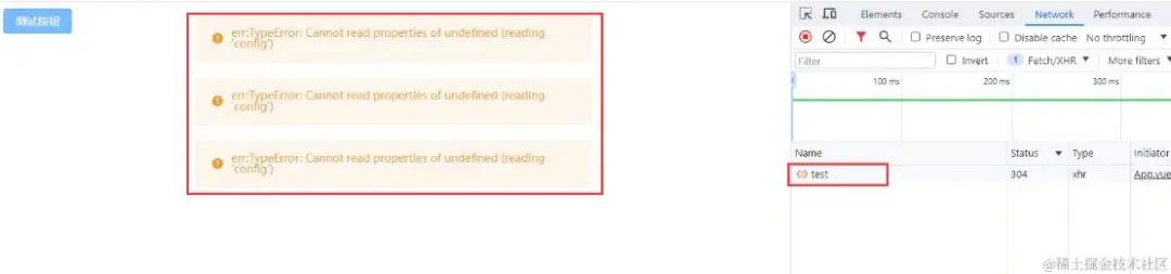這里我連續(xù)點(diǎn)擊了4次按鈕,可以看到,的確是只有一個(gè)請(qǐng)求發(fā)送出去,可是因?yàn)樵诖a邏輯中,我們對(duì)錯(cuò)誤進(jìn)行了一些處理,所以就將報(bào)錯(cuò)消息提示了3次,這樣是很不友好的,而且,如果在錯(cuò)誤捕獲中有做更多的邏輯處理,那么很有可能會(huì)導(dǎo)致整個(gè)程序的異常。 而且,這種方案還會(huì)有另外一個(gè)比較嚴(yán)重的問(wèn)題: 我們?cè)谏厦嬖谏烧?qǐng)求key的時(shí)候把hash考慮進(jìn)去了(如果是history路由,可以將pathname加入生成key),這是因?yàn)轫?xiàng)目中會(huì)有一些數(shù)據(jù)字典型的接口,這些接口可能有不同頁(yè)面都需要去調(diào)用,如果第一個(gè)頁(yè)面請(qǐng)求的字典接口比較慢,第二個(gè)頁(yè)面的接口就被攔截了,最后就會(huì)導(dǎo)致第二個(gè)頁(yè)面邏輯錯(cuò)誤。 那么這么一看,我們生成key的時(shí)候加入了hash,講道理就沒(méi)問(wèn)題了呀。 可是倘若我這兩個(gè)請(qǐng)求是來(lái)自同一個(gè)頁(yè)面呢? 比如,一個(gè)頁(yè)面同時(shí)加載兩個(gè)組件,而這兩個(gè)組件都需要調(diào)用某個(gè)接口時(shí):