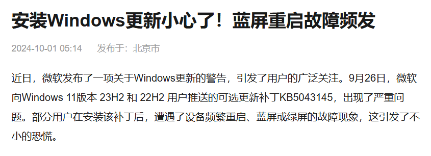 但是有些補(bǔ)丁更新后會(huì)導(dǎo)致系統(tǒng)的不穩(wěn)定,就像前不久微軟的更新導(dǎo)致電腦藍(lán)屏的事件