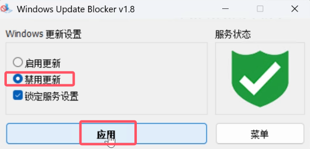 打開工具,界面很簡(jiǎn)單,選擇“禁用更新”,然后點(diǎn)擊應(yīng)用就可以了