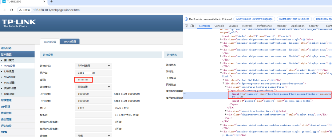 如果要是通過運(yùn)營商查找,他們也是查找不到客戶之前的寬帶的密碼的,只有重置,重置時(shí),還要身份驗(yàn)證,很是麻煩,那有沒有快速一點(diǎn)的辦法能看到,這幾個(gè)小黑點(diǎn),到是哪些數(shù)字呢? 關(guān)注即到哥的兄弟有福了,今天就教你如何查看,這個(gè)小黑點(diǎn)的密碼如何還原成明文的密碼!下面我們一起來看一下吧。 解決過程 第一步,打開瀏覽器,我使用的是google瀏覽器。登錄到路由器先找到,寬帶的PPPOE帳號和密碼,我們在密碼框中,右擊,然后選擇檢查。