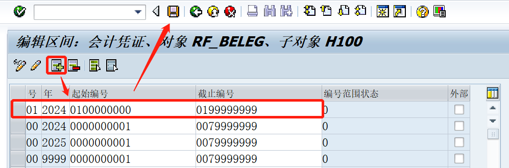 這些號(hào)碼范圍與特定的會(huì)計(jì)年度和憑證類型相關(guān)聯(lián)。比如SA類型憑證在2024年做賬產(chǎn)生的會(huì)計(jì)憑證號(hào)的范圍在100000000至199999999內(nèi)。 SAP財(cái)務(wù)會(huì)計(jì)憑證號(hào)碼段相關(guān)配置及操作 1、定義憑證編號(hào)范圍(FBN1) 一般在系統(tǒng)上線前定義好所有憑證的號(hào)碼段,上線后也可能會(huì)有少量新增號(hào)碼段的需求,具體操作步驟如下。 比如,如下新增01號(hào)碼段,對(duì)應(yīng)號(hào)碼范圍:100000000到199999999。