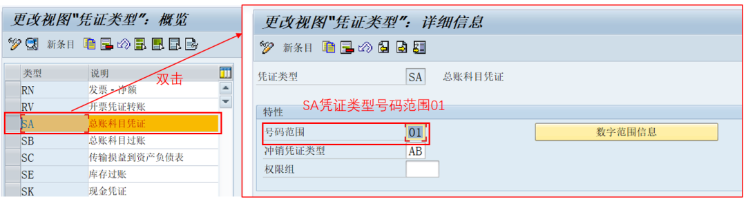 比如,如下是SA財(cái)務(wù)憑證類型分配的號(hào)碼范圍