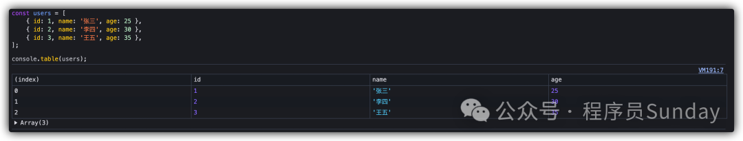 2. 使用 console.table() 打印數(shù)組