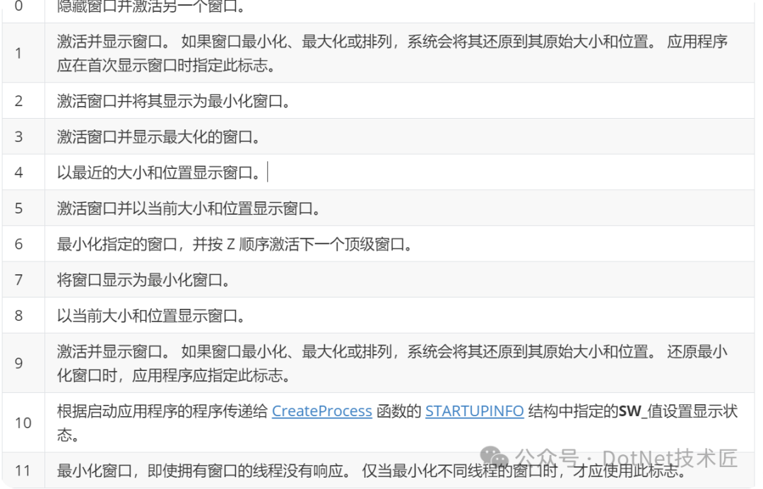 作用:設(shè)置指定窗口的顯示狀態(tài)。