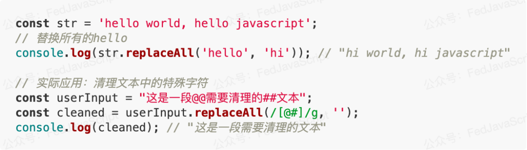 2. replaceAll - 全局替換的優(yōu)雅之選在ES2021之前,要替換字符串中的所有匹配項,我們通常需要使用正則表達式。而現(xiàn)在,replaceAll方法提供了更直觀的解決方案。