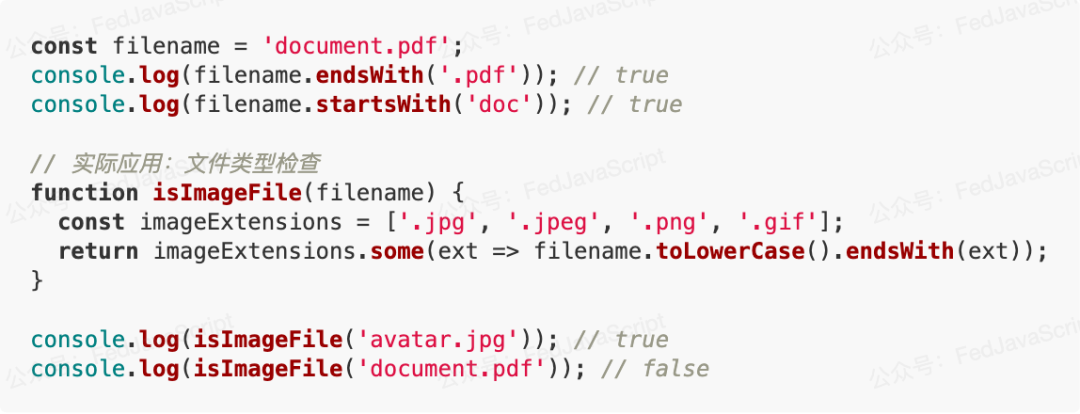 4. startsWith/endsWith - 字符串檢查的新選擇這兩個方法為字符串的開頭和結(jié)尾檢查提供了簡潔的解決方案,特別適合處理文件名、URL等場景。