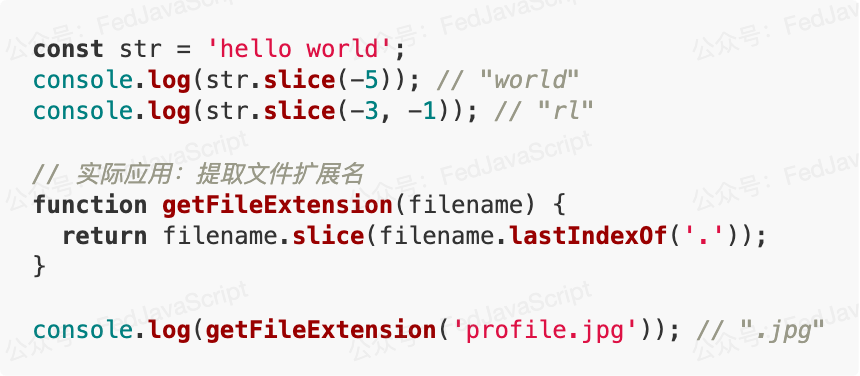 5. slice結(jié)合負數(shù)索引 - 靈活的字符串截取使用負數(shù)索引可以從字符串末尾開始計數(shù),這在需要截取最后幾個字符時特別有用。