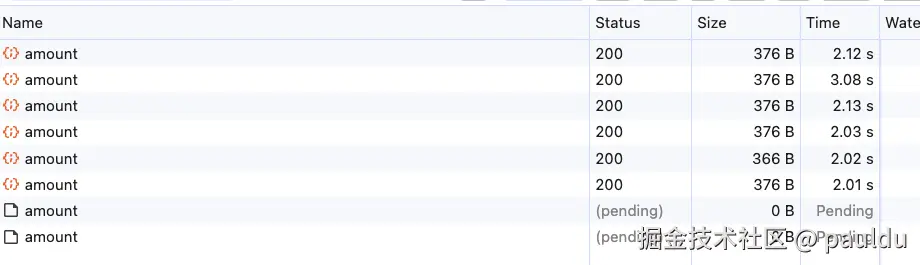 接口固定在大約2秒返回,就會導(dǎo)致永遠有幾個請求在阻塞,跟我們的預(yù)想不同