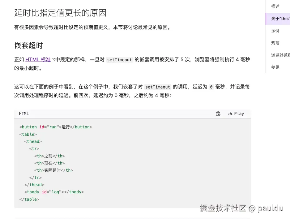 嵌套多次的時候會有4ms的延遲(可以點擊下方的例子進行測試)