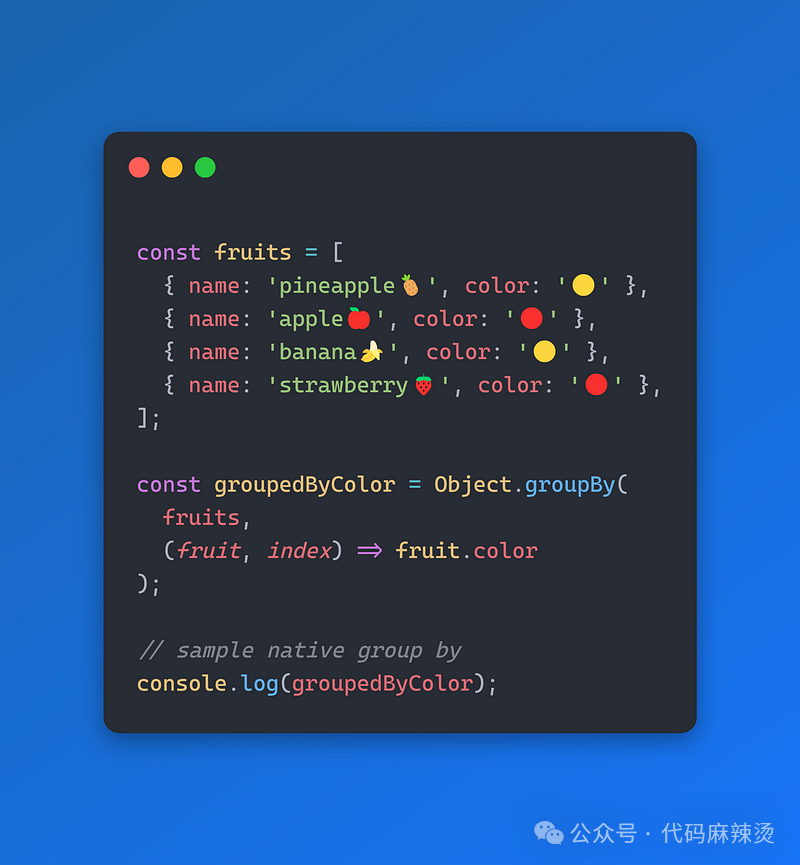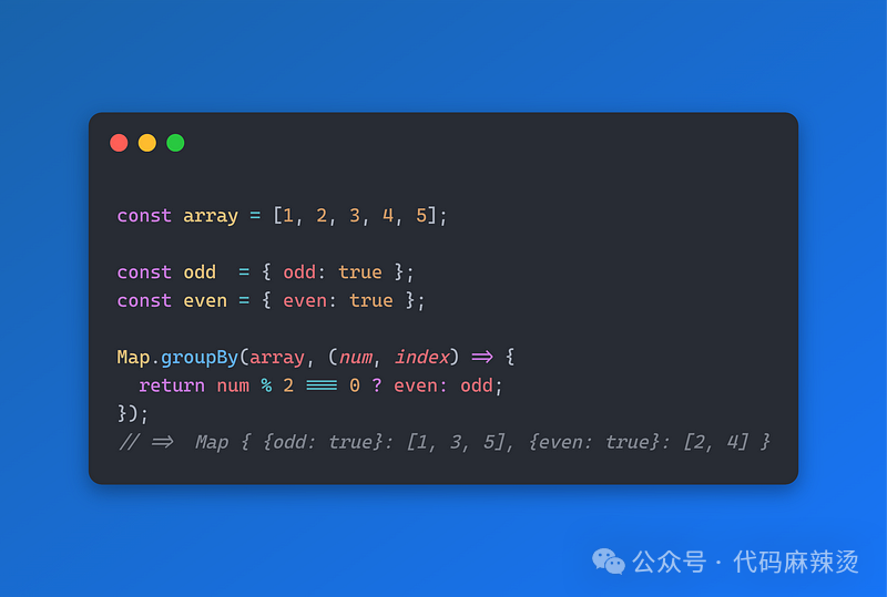 有了它,也就不在需要Lodash了,現(xiàn)在看Lodash基本大部分功能都有了原生的支持。 我本以為還會(huì)有一個(gè)類似 Array.prototype.groupBy 的新實(shí)例方法,但不知出于什么原因,它并沒(méi)有增加到數(shù)組上。 反倒是在Map上增加了一個(gè)靜態(tài)方法, Map.groupBy 對(duì)對(duì)象鍵進(jìn)行分組: