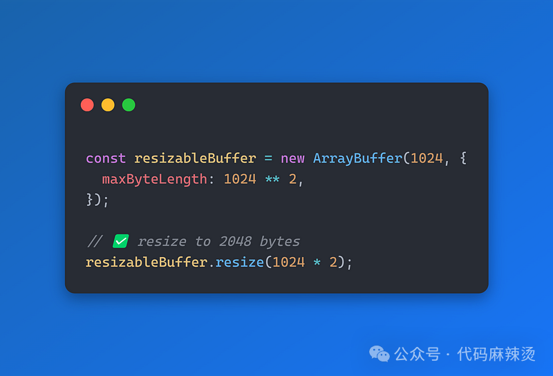 有了緩沖器,每個(gè)階段處理數(shù)據(jù)的速度各不相同,互不影響。 但是,如果流水線上的數(shù)據(jù)超過(guò)了緩沖區(qū)的容量,會(huì)發(fā)生什么情況呢? 在此之前,我們必須將當(dāng)前數(shù)據(jù)的緩沖區(qū)全部復(fù)制到一個(gè)更大的緩沖區(qū)中。 這對(duì)性能的影響非常大,尤其是當(dāng)管道中會(huì)有大量數(shù)據(jù)時(shí)。 ES15 為我們提供了解決這一問(wèn)題的方法:可調(diào)整的數(shù)組緩沖區(qū)。