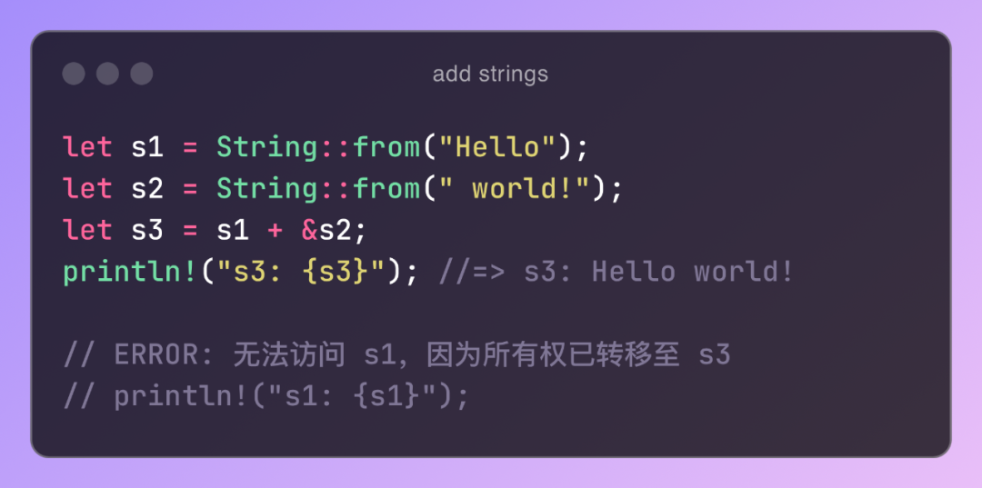 因此,使用 + 執(zhí)行完拼接操作,原字符串將失去所有權(quán):