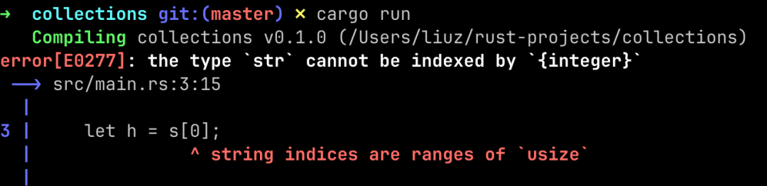 format! 宏的可讀性更好,并且它不會(huì)搶奪字符串的所有權(quán),之后可以繼續(xù)使用原來(lái)的字符串。 字符串索引 在其他編程語(yǔ)言,訪問(wèn)字符串索引是個(gè)常見(jiàn)操作。但是,如果你在 Rust 中進(jìn)行此類(lèi)操作,會(huì)得到一個(gè)錯(cuò)誤: