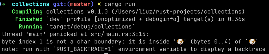 如果你截取的字節(jié)序列不是一個(gè)完整的 UTF-8 編碼,Rust 會(huì) panic 退出。使用字符串切片務(wù)必小心。