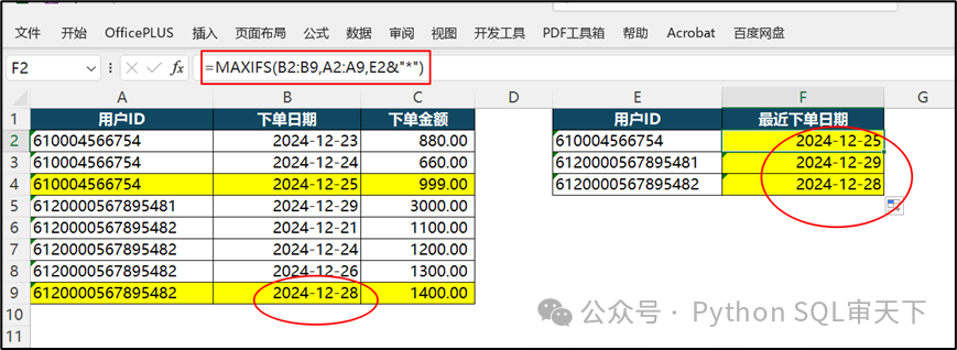 在 Excel 的函數(shù)家族中,MAXIFS 函數(shù)與 MINIFS 函數(shù)恰似一對(duì) “雙子星”,它們?cè)诠δ苌舷嗷ズ魬?yīng),前者專注于在特定條件下精準(zhǔn)定位最大值,而后者則致力于找出最小值,二者的語(yǔ)法結(jié)構(gòu)和邏輯具有高度的相似性,因此將它們放在一起講解,有助于更全面、系統(tǒng)地掌握這組函數(shù)工具。 接下來(lái),我們以 MAXIFS函數(shù)為范例進(jìn)行詳細(xì)闡述,以便您能清晰地理解其用法,而 MINIFS 函數(shù)的使用方法您可依此類推,觸類旁通。 1、基本語(yǔ)法: MAXIFS(max_range, criteria_range1, criteria1, [criteria_range2, criteria2], …) max_range:必需參數(shù),指定要在其中查找最大值的單元格區(qū)域,即目標(biāo)區(qū)域,通常是數(shù)值區(qū)域。 criteria_range1:必需參數(shù),指定要進(jìn)行條件判斷的單元格區(qū)域,該區(qū)域中的單元格將與對(duì)應(yīng)的criteria1 進(jìn)行比較。 criteria1:必需參數(shù),指定要應(yīng)用于 criteria_range1 中的單元格的條件,可以是數(shù)字、文本、表達(dá)式或單元格引用等。 [criteria_range2, criteria2], …:可選參數(shù),最多可以添加126 個(gè)額外的條件區(qū)域和條件對(duì),用于進(jìn)一步細(xì)化篩選條件。 2、基本用法 (1)統(tǒng)計(jì)每個(gè)部門的最高銷售額 =MAXIFS($D$2:$D$17,$A$2:$A$17,F2) ![]() (2)統(tǒng)計(jì)業(yè)務(wù)二部銷售二組的最高銷售額 =MAXIFS(D2:D17,A2:A17,F2,B2:B17,G2) ![]() 乍看之下,MAXIFS 函數(shù)的使用似乎輕而易舉,然而,就像許多看似簡(jiǎn)單的工具一樣,在實(shí)際應(yīng)用中,MAXIFS 函數(shù)也暗藏著一個(gè)頗為常見(jiàn)的陷阱。 為了幫助您在未來(lái)的工作中能夠更加順暢、精準(zhǔn)地運(yùn)用 MAXIFS 函數(shù),避免陷入這個(gè)潛在的困境,我們有必要在此深入探討一下這個(gè)容易被忽視的 “坑” 究竟在何處,以及該如何巧妙地避開(kāi)它。 比如說(shuō)我們查找用戶最近的下單日期: =MAXIFS(B2:B9,A2:A9,E2) ![]() 很明顯,你會(huì)發(fā)現(xiàn)用戶6120000567895482最近下單日期是2024-12-28而不是2024-12-29,查找的結(jié)果是錯(cuò)誤的。 正確的公式應(yīng)該是: =MAXIFS(B4:B11,A4:A11,E2&"*") ![]() 同樣的問(wèn)題也會(huì)出現(xiàn)在SUMIF函數(shù)中,比下圖所示: ![]() 原因何在?因?yàn)镾UMIF函數(shù)在工作時(shí)會(huì)率先將文本型的數(shù)字轉(zhuǎn)換為常規(guī)數(shù)字形式。這就導(dǎo)致了一個(gè)有趣卻又令人困擾的現(xiàn)象,當(dāng)面對(duì)類似物料代碼 “62123456789012345” 和 “62123456789012366” 這樣的數(shù)據(jù)時(shí),從第 16 位起,都會(huì)被統(tǒng)一變更為 0,最終二者皆呈現(xiàn)為 “62123456789012300” 的模樣。如此一來(lái),它們?cè)?nbsp;SUMIF函數(shù)的計(jì)算過(guò)程中,匯總數(shù)量便毫無(wú)二致,實(shí)際上是將以上 4 個(gè)數(shù)量進(jìn)行了匯總操作。 或許此時(shí)有人會(huì)進(jìn)一步追問(wèn),為何會(huì)無(wú)端變?yōu)?nbsp;0 呢?這背后的根源在于,Excel 系統(tǒng)中數(shù)字的精度僅僅限定為 15 位。一旦超出此范圍,便會(huì)出現(xiàn)這種精度截?cái)嗟那闆r。 既然知曉了問(wèn)題的根源,那又該如何巧妙化解這一難題呢?答案其實(shí)很簡(jiǎn)單,只需在條件的末尾添加一個(gè)通配符 “*” 即可。 別看這只是一個(gè)小小的符號(hào),它卻有著神奇的功效,能夠?qū)⒃颈晦D(zhuǎn)換的數(shù)字再次強(qiáng)制轉(zhuǎn)換回文本形式,從而確保 SUMIF 函數(shù)在條件判斷時(shí)能夠精準(zhǔn)地區(qū)分不同的物料代碼,避免因數(shù)字精度問(wèn)題而導(dǎo)致的錯(cuò)誤匯總。這般轉(zhuǎn)來(lái)轉(zhuǎn)去的過(guò)程,是不是也讓您感受到了 Excel 函數(shù)的奇妙之處呢? =SUMIF($A$2:$A$5,E2&"*",$B$2:$B$5) ![]() 其實(shí)在Excel 函數(shù)的應(yīng)用領(lǐng)域中,諸如 MAXIFS、MINIFS、AVERAGEIFS、COUNTIFS、COUNTIF、SUMIF 以及 SUMIFS 這一系列函數(shù),都潛藏著一個(gè)容易被忽視卻又可能引發(fā)嚴(yán)重后果的問(wèn)題。當(dāng)這些函數(shù)所涉及的條件區(qū)域中存在長(zhǎng)度大于 15 位的文本型數(shù)字時(shí),我們都需要運(yùn)用通配符來(lái)確保數(shù)據(jù)計(jì)算準(zhǔn)確無(wú)誤。 該文章在 2024/12/30 12:22:04 編輯過(guò) |