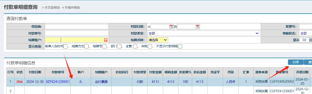[點晴模切ERP]點晴FMS-付款單打印功能-操作流程