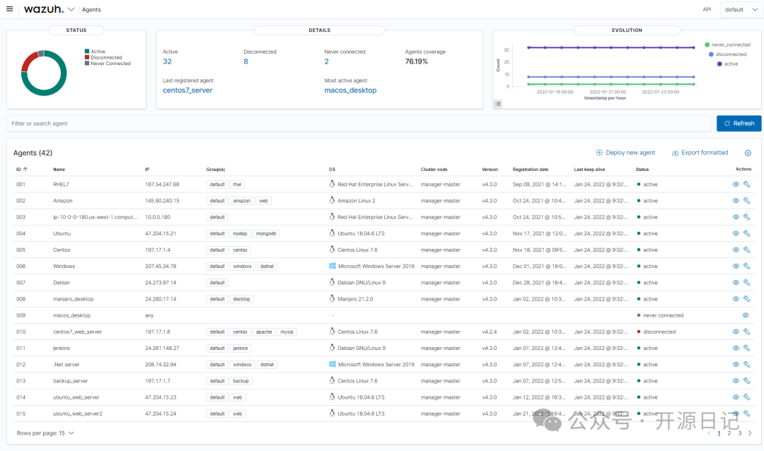 總的來(lái)說(shuō),Wazuh就是一個(gè)免費(fèi)又強(qiáng)大的網(wǎng)絡(luò)安全工具,它能幫助個(gè)人和企業(yè)保護(hù)他們的電腦和網(wǎng)絡(luò)不受攻擊。安裝和使用都挺方便的,而且因?yàn)樗情_(kāi)源的,所以還有一大堆熱心的開(kāi)發(fā)者和用戶(hù)在不斷地改進(jìn)它,讓你用起來(lái)更加順手。