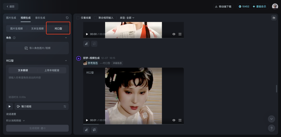 唯一目前最大的缺陷就是,你不管上傳什么比例的角色,都會給你自動裁成1:1的,無法調整,在一個群里看到他們說這塊在改了,12月可能會上,我也還在等。一切就緒之后,直接點擊生成視頻,開跑,積分消耗的不多,基本就是1s1積分。每天登錄幾乎都會送60~100的積分。而這整套,真的也就幾分鐘,就完事了。也真的,有手就行。