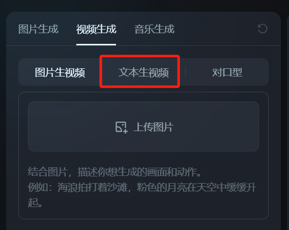 進(jìn)入視頻生成頁(yè)面后,點(diǎn)擊【文本生視頻】,輸入文本描述生成對(duì)應(yīng)的視頻片段。