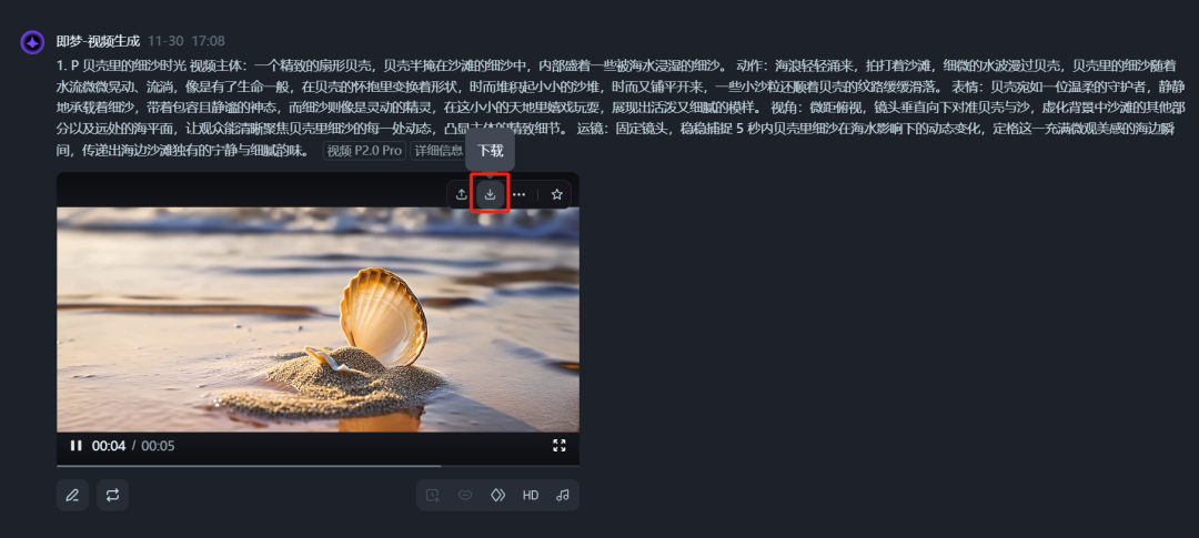 等待2-5分鐘生成視頻成功,點(diǎn)擊【下載圖標(biāo)】。