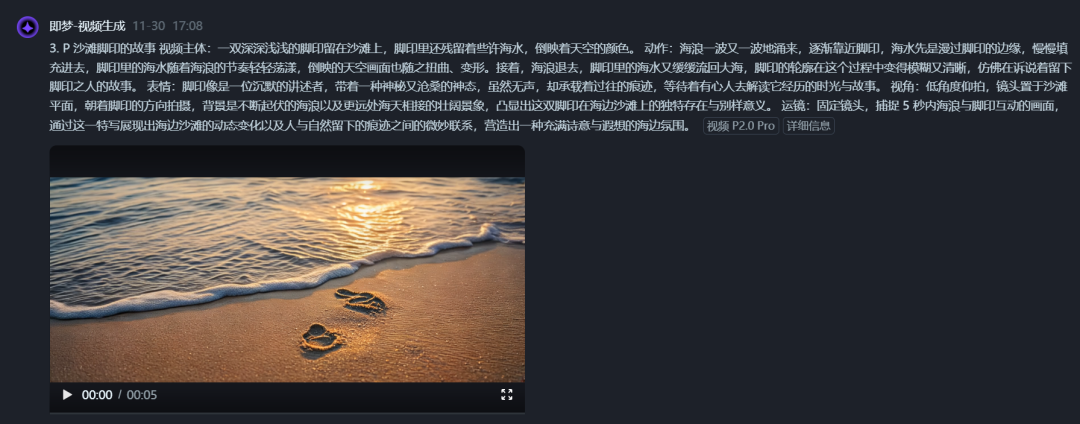 到這里,咱們一起用豆包+即夢(mèng)AI快速生成了海邊沙灘唯美鏡頭視頻片段,你學(xué)會(huì)了嗎?