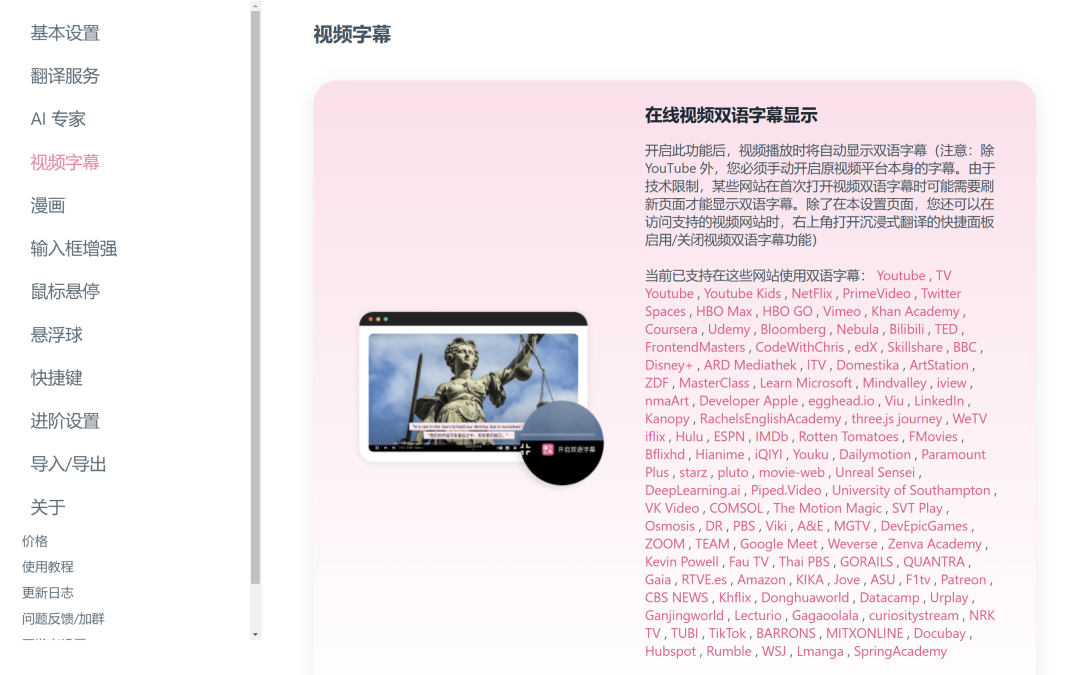 看劇自動(dòng)翻譯沉浸式翻譯竟然還支持視頻雙語字幕顯示。