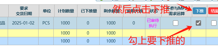 勾上要下推的,然后點(diǎn)擊下推 如下圖: