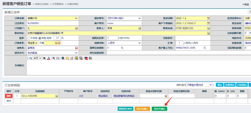 確定單價(jià),數(shù)量和客戶信息無誤后,點(diǎn)擊保存即可, 如下圖: