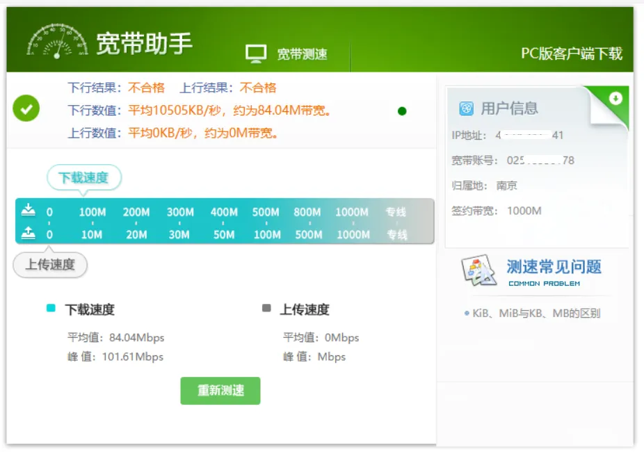 2000兆帶寬安裝好之后,測(cè)試后發(fā)現(xiàn)網(wǎng)速并沒有什么改善。