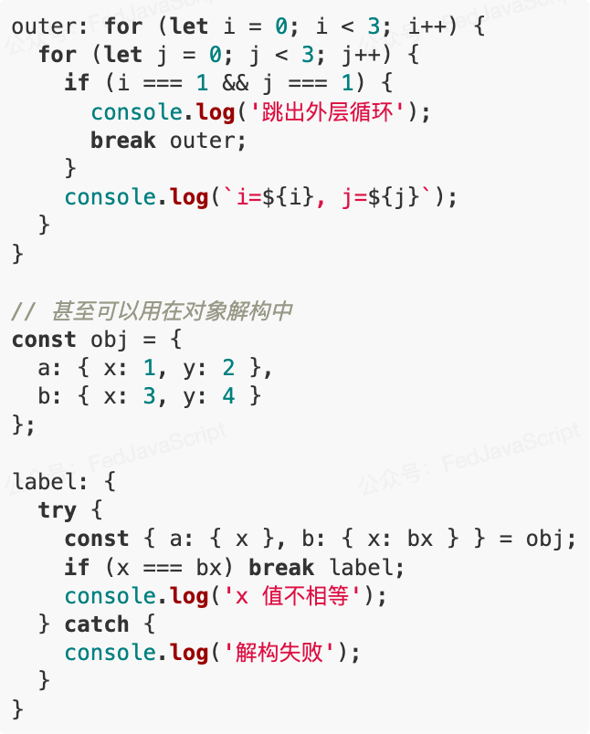 JavaScript 中的 label 語句雖然不常見,但在特定場景下非常有用,特別是在嵌套循環(huán)中: