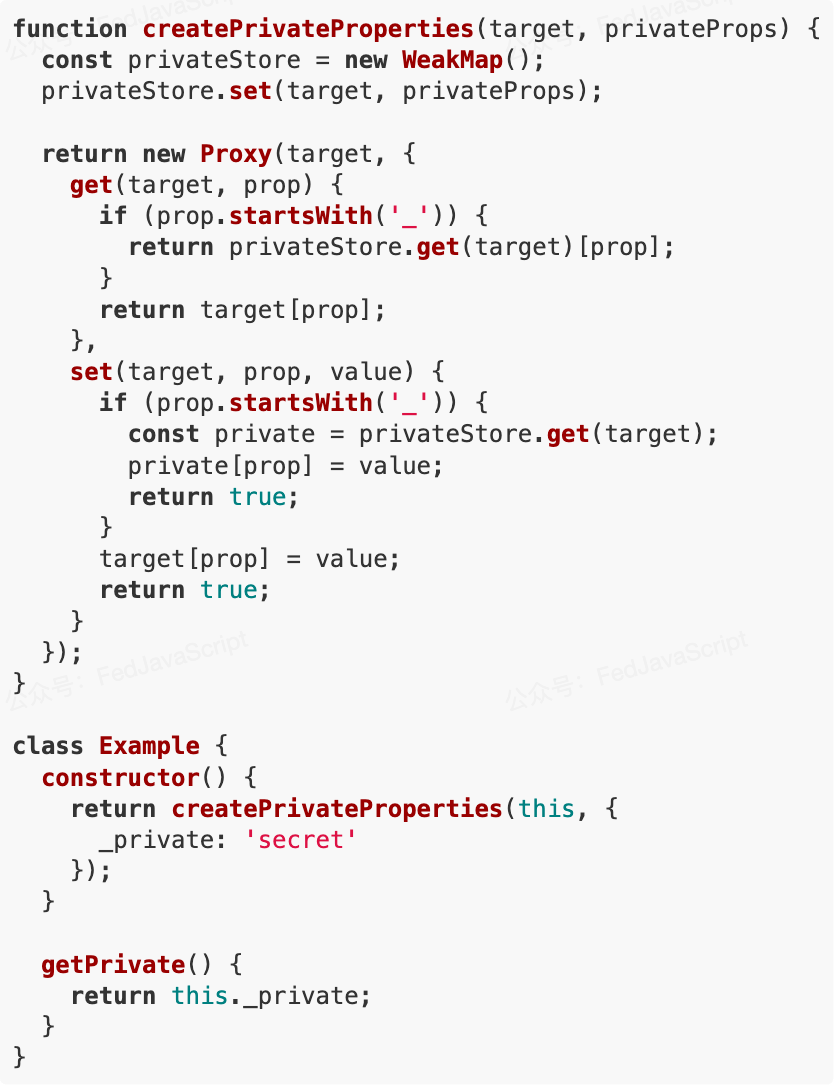在類私有字段還未普及之前,可以使用 Proxy 來模擬私有屬性: