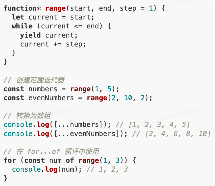 JavaScript 沒有原生的范圍類型,但我們可以用 Generator 實現(xiàn):