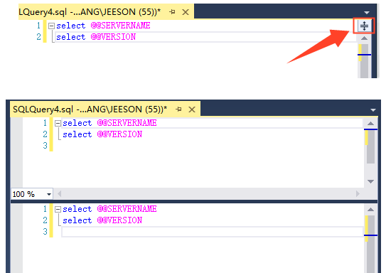 【拆分(鏡像屏)】 上面的分屏可能較多的同學(xué)知道了,但這個(gè)屏幕拆分可能就很少人知道了。查詢窗口的右上角,有一個(gè)拆分符號(hào),點(diǎn)擊往下拉,就會(huì)出現(xiàn)兩個(gè)內(nèi)容一模一樣的屏幕,上下屏都可以編輯,并實(shí)時(shí)同步顯示。這對(duì)于代碼較多,來(lái)回查看的比較時(shí),是非常有用的。
