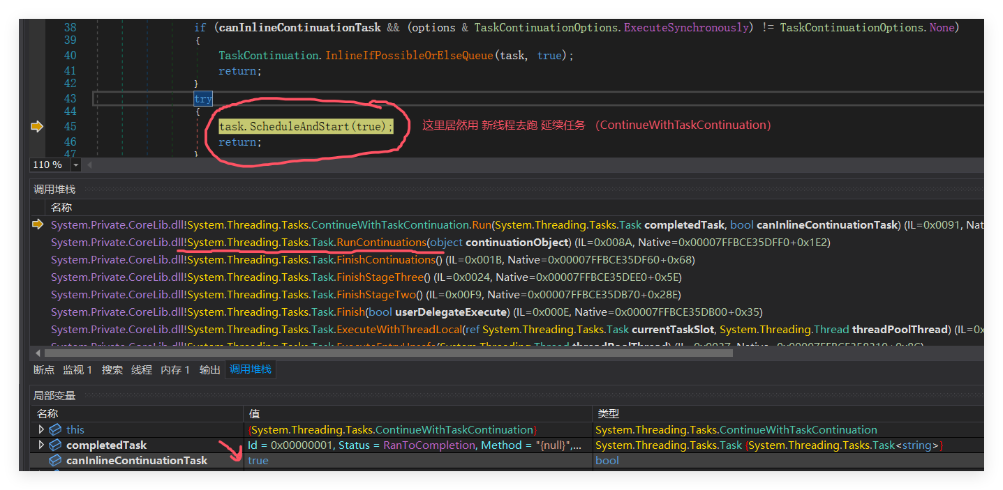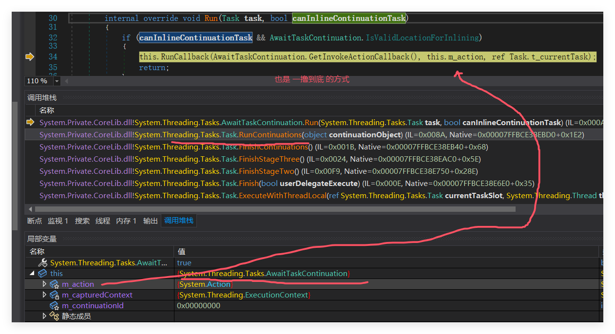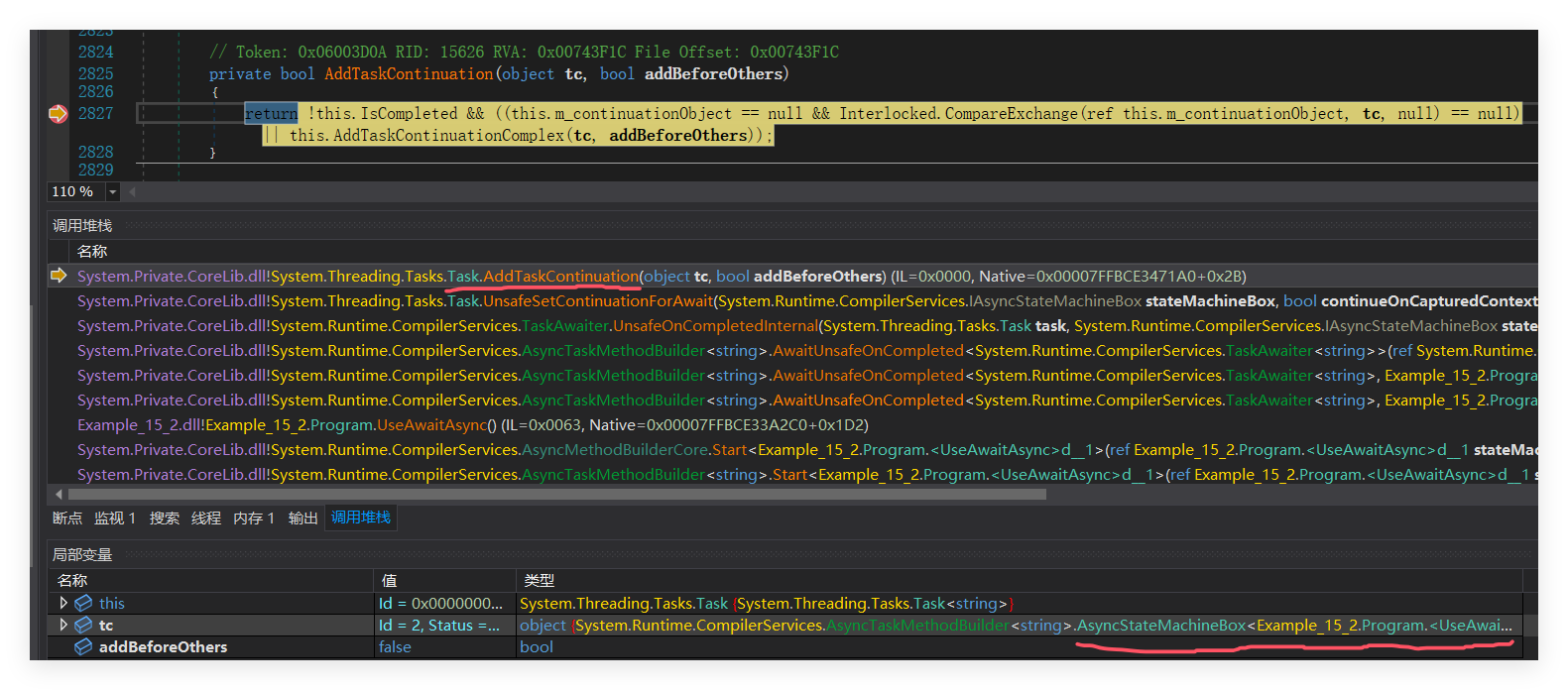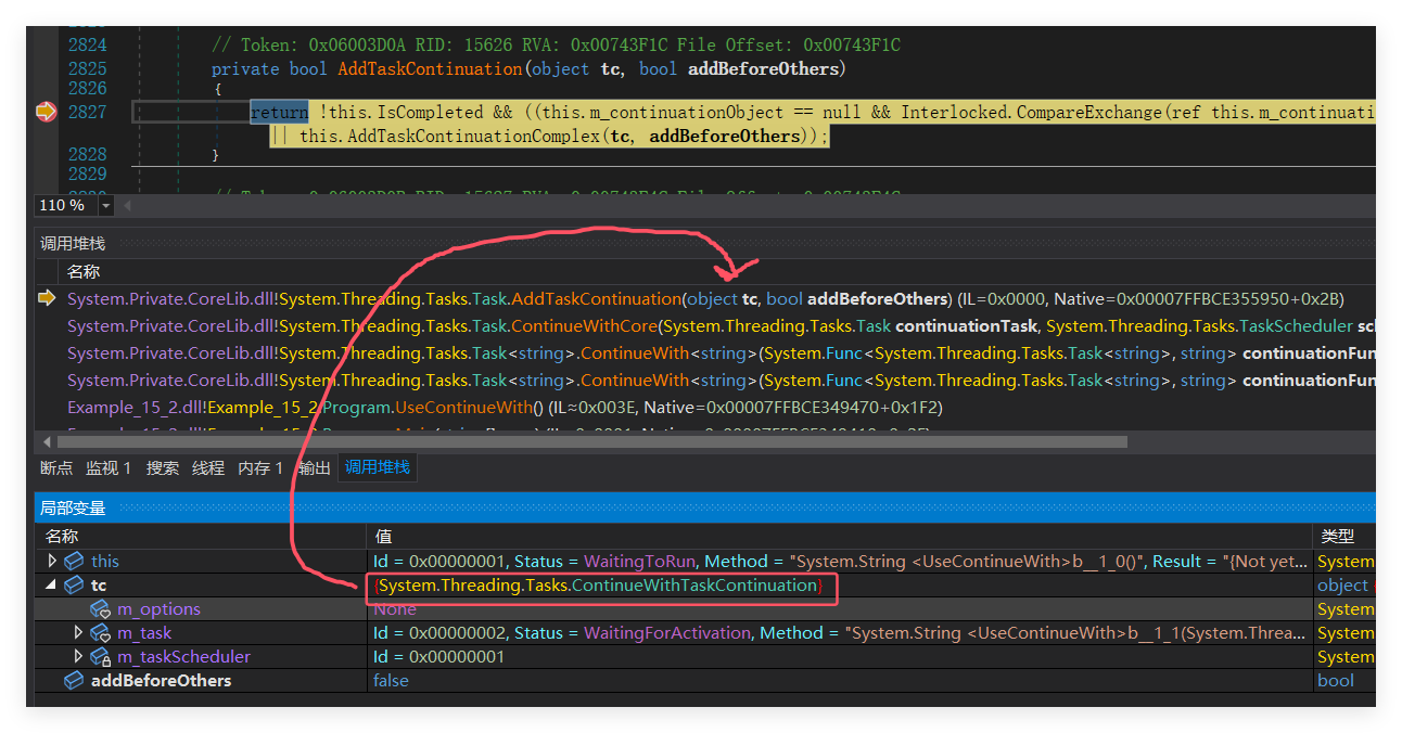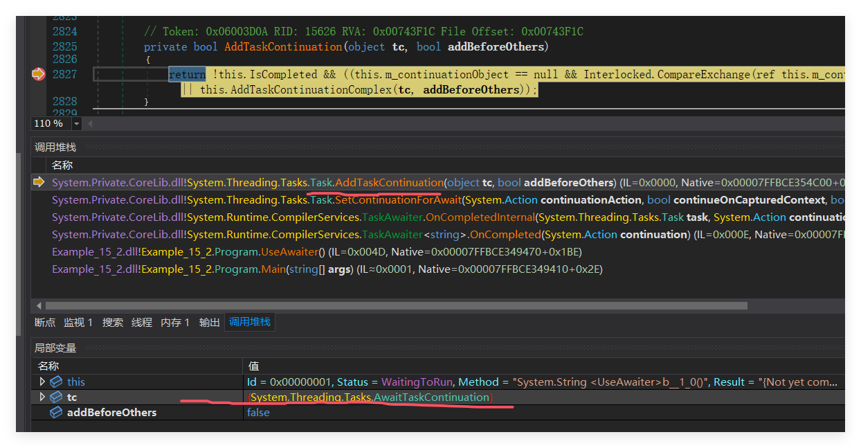 代碼和模型圖都有了,接下來(lái)就是用 dnspy 開干了。。。還是在 AddTaskContinuation 和 RunContinuations 上埋伏斷點(diǎn)觀察。