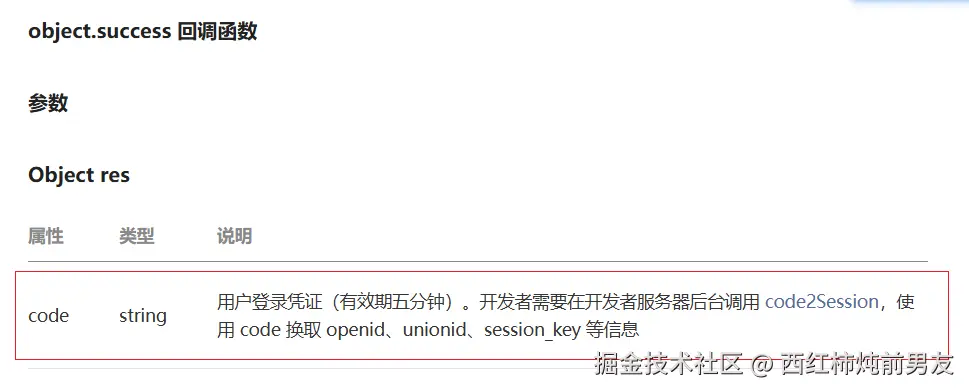 其次再看看wx.login的傳參+返回值,重點關(guān)注success和fail,一個是成功回調(diào),一個是失敗回調(diào)