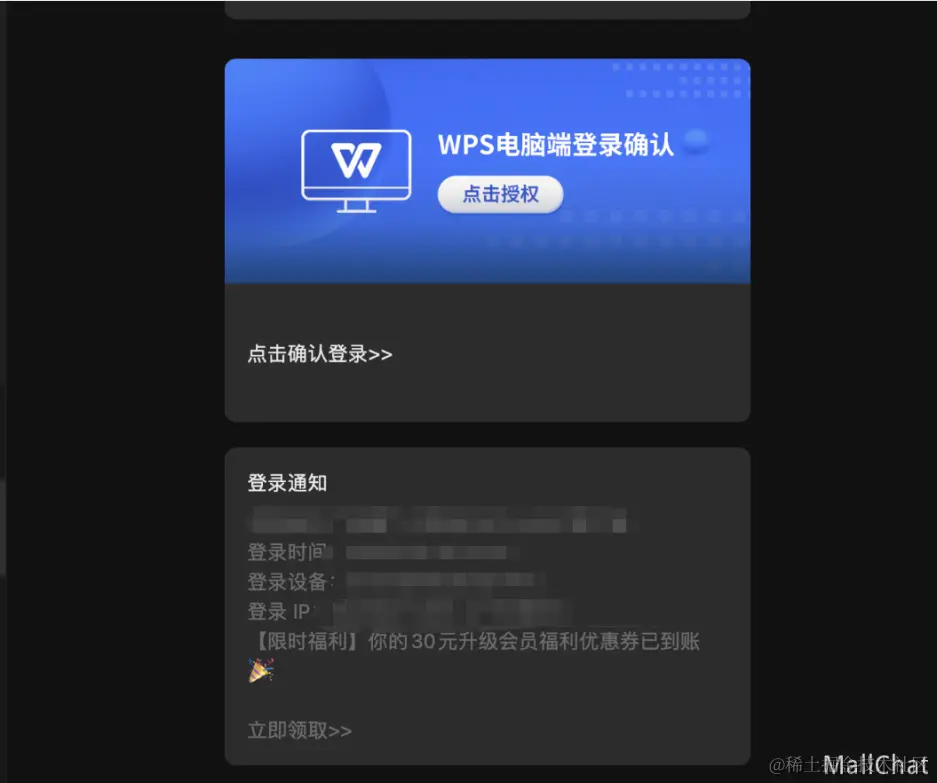 我最討厭這種明明支持掃碼或者短信登錄給我選的,結(jié)果我為了方便不接驗(yàn)證碼,選擇掃碼登錄,登錄成功后又要求我綁定手機(jī),非常難受。 2.掃公眾號事件碼+授權(quán)wps就采用這樣的登錄方式, 1.通過掃描一個(gè)攜帶參數(shù)的二維碼類似 2.關(guān)注公眾號后。后端會(huì)收到掃碼用戶的事件消息,里面有 3.如果是一個(gè)未注冊過的用戶,為了獲取用戶昵稱和頭像,公眾號會(huì)主動(dòng)推送一個(gè)鏈接,用戶點(diǎn)擊授權(quán)后,就能獲取用戶信息。